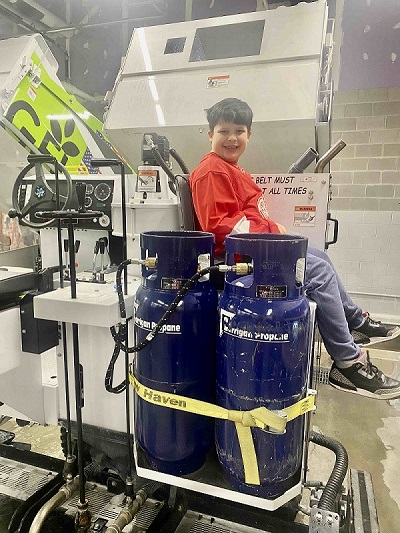 Caption: Trinity Health patient Luke Dejager rides the Red Wings Zamboni